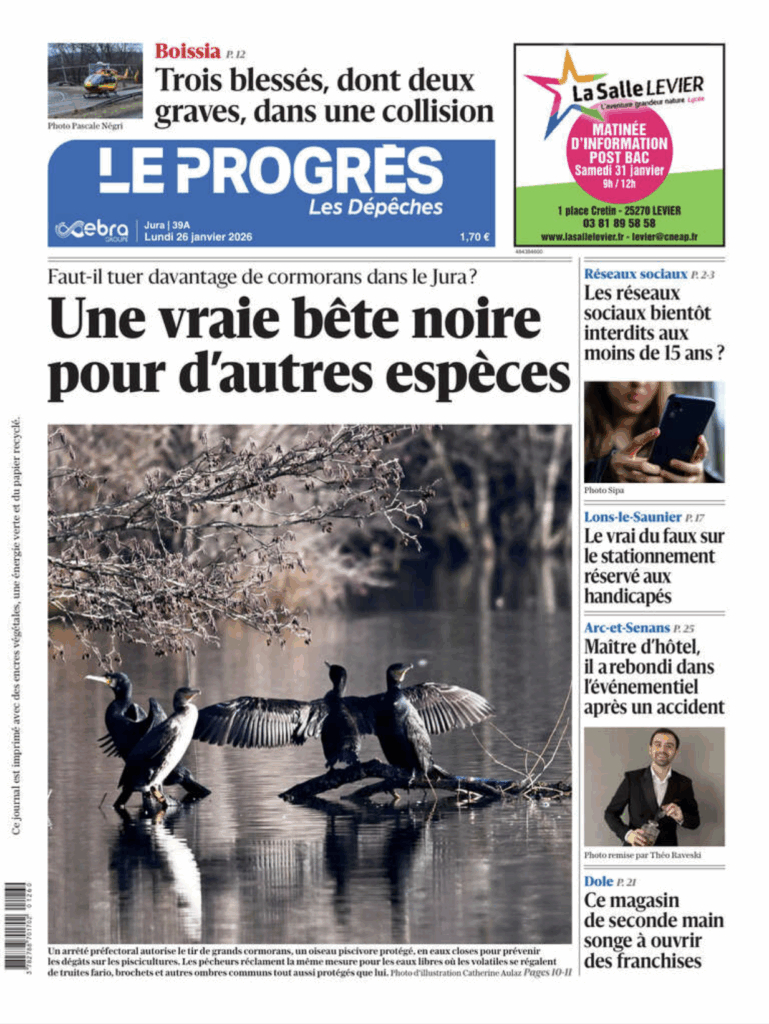 Le Progrès, édition Jura — Janvier 2026 Une de couverture