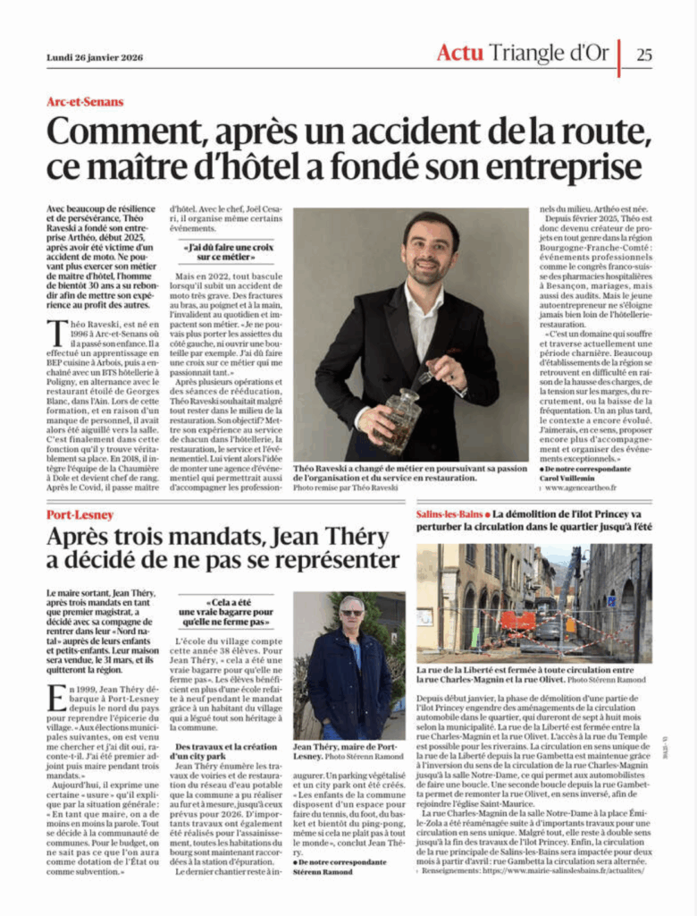 Un an après les débuts, Le Progrès met Arthéo à sa une. Une reconnaissance qui confirme l'ancrage durable de l'agence dans le paysage entrepreneurial jurassien.