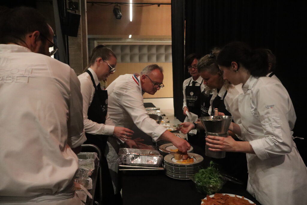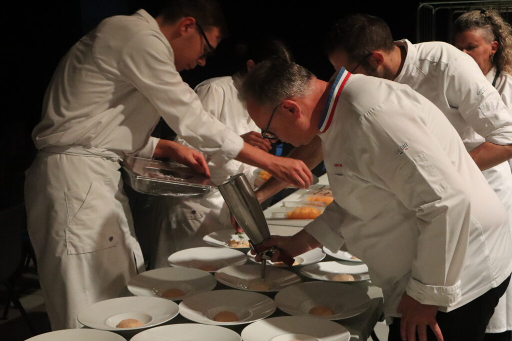 Le dîner fut un moment fort de la soirée, orchestré par le chef Fabrice Courbet, Meilleur Ouvrier de France. Une cuisine d’exception, un service millimétré, et une atmosphère à la fois élégante et chaleureuse.